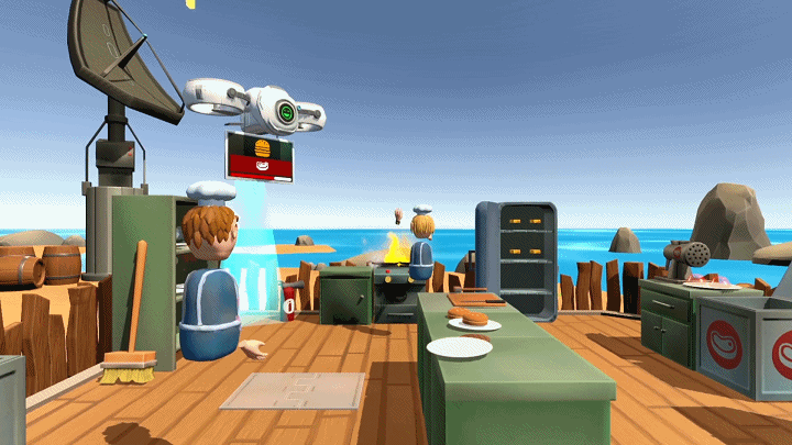 《美食島:大胃王(Kitchen Island VR)》作為一款歡鬧屬性很強(qiáng)的VR游戲,玩法機(jī)制其實(shí)十分簡單易上手,就是幾名玩家扮演廚師,合作完成從煮菜到上菜的工作。