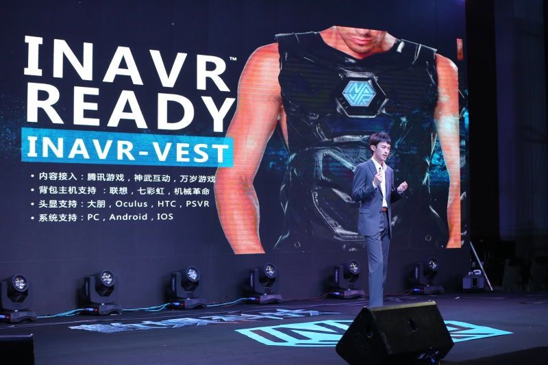 發(fā)布會(huì)現(xiàn)場(chǎng),數(shù)娛科技CEO林云帆全方位介紹了本次發(fā)布的新品——“INAVR™力反饋背心”和INAVR™多人空間定位系統(tǒng)解決方案。林云帆說(shuō):“以前我們關(guān)注都是Input(輸入),現(xiàn)在伴隨著視覺(jué)上的沉浸感,是時(shí)候去關(guān)注Output(輸出)了。”據(jù)林云帆介紹,從原型到量產(chǎn)的階段中,產(chǎn)品紙樣改了40多次,主板迭代了10多次。為了確定一個(gè)合適的大小,他們找來(lái)了100多號(hào)人來(lái)試玩,甚至還買(mǎi)了許多醫(yī)療的器具來(lái)測(cè)試不同類(lèi)型的力反饋效果。