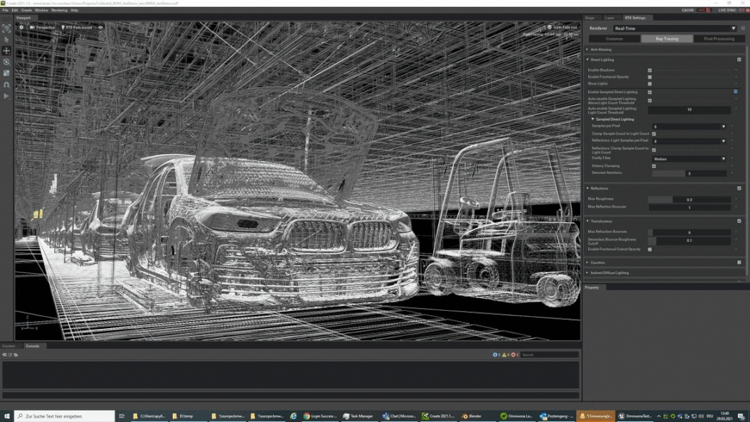 寶馬通過 Omniverse 平臺建造的虛擬工廠,包含了真實(shí)工廠里的各種要素