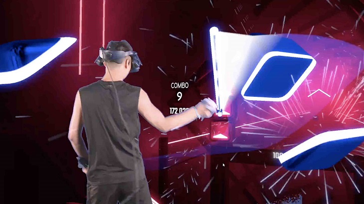 《節(jié)奏空間》作為社交媒體上十分具有知名度的VR健身游戲,本身就擁有豐富的玩家原創(chuàng)內容,此次來自VR屆的知名女裝大佬“空氣鴿鴿”和虛擬“牛奶”形象的MilkVio在《節(jié)奏空間》表演賽上攜手表演劍圣舞姿。MilkVio在舞臺上一反“萌”態(tài),揮劍的速度讓人目不暇接;而“空氣鴿鴿”則延續(xù)去年的精彩表現(xiàn),挑戰(zhàn)專家+高難度曲目《化身星海》,其颯爽的英姿讓人過目不忘。