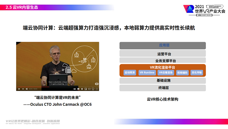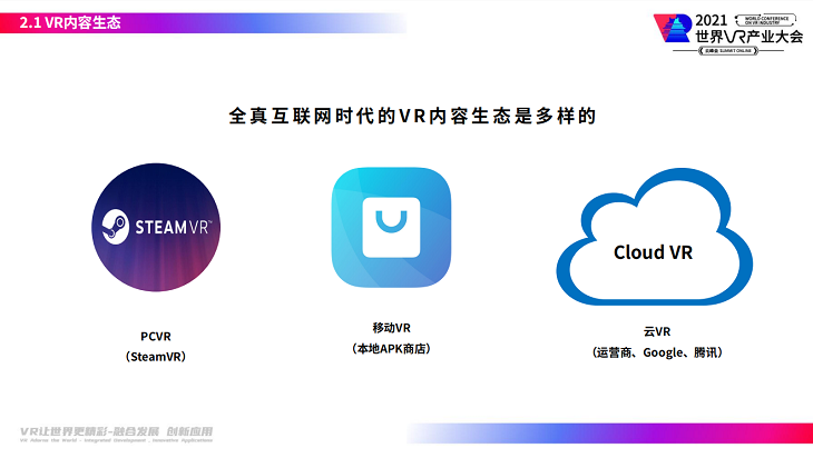 目前內(nèi)容市場(chǎng)包含了三種內(nèi)容形態(tài),PC VR、移動(dòng)VR本地商店、以及云VR。三種內(nèi)容生態(tài)在市場(chǎng)上均扮演著不可替代的作用,為用戶內(nèi)容體驗(yàn)發(fā)揮著巨大的作用,但是三千兆互聯(lián)網(wǎng)的時(shí)代已經(jīng)來臨,未來的VR用戶將會(huì)出現(xiàn)爆發(fā)式增長(zhǎng),為了能夠更好的保證用戶的沉浸感,需要更高的算力支持,那么“云”的入局將會(huì)很有必要,而“端云協(xié)同計(jì)算”將會(huì)是我們未來要努力探索的內(nèi)容生態(tài)發(fā)展方向。