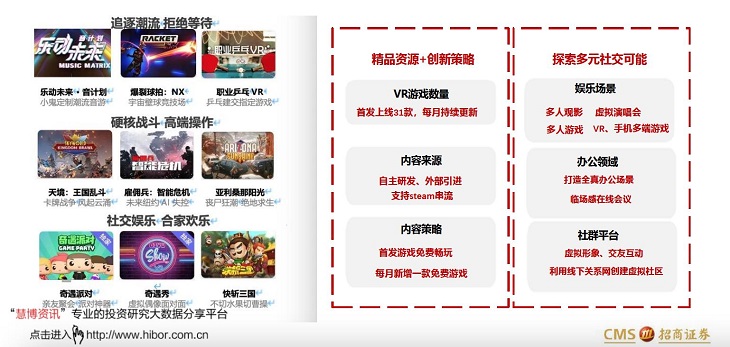 鑒于此,國內(nèi)廠商愛奇藝奇遇VR創(chuàng)新提出“好游戲免費(fèi)玩”的方式,以減免游戲玩家氪金壓力,面對(duì)嘗鮮用戶取得了立竿見影的市場反饋。于此同時(shí),針對(duì)內(nèi)容制作方,愛奇藝奇遇VR給出三類合作模式:“根據(jù)品質(zhì)議價(jià)+按出貨量付費(fèi)+多次批量采購”的采購方式、簽約工作室以及戰(zhàn)略合作,讓開發(fā)者專注開發(fā)的同時(shí)共建內(nèi)容生態(tài)。通過上述舉措,打消了來自前端用戶和內(nèi)容供給側(cè)的雙向顧慮,大量的活躍用戶也為內(nèi)容方帶來正反饋,通過內(nèi)容生態(tài)的良性循環(huán),實(shí)現(xiàn)VR平臺(tái)、硬件、內(nèi)容的共同增長。在大量高品質(zhì)內(nèi)容持續(xù)填充下,愛奇藝奇遇VR正逐漸成長為國內(nèi)最大原生VR內(nèi)容平臺(tái)之一,并逐漸構(gòu)筑起強(qiáng)大的內(nèi)容壁壘。