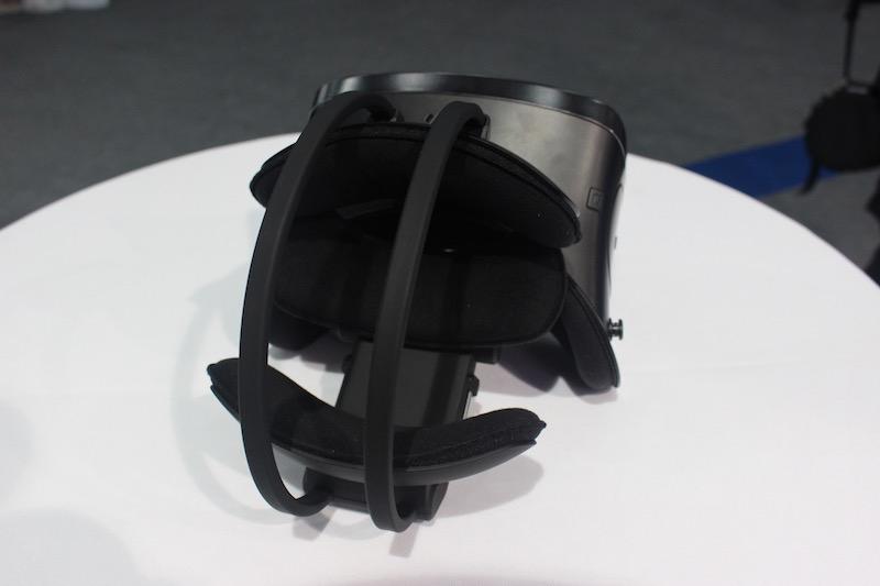 這是IDEALENS K2的背面照,我們可以看到,這款一體機(jī)的固定裝置是在頭顯上方的,這與之前的VR頭顯在側(cè)面的固定頭帶有所不同。