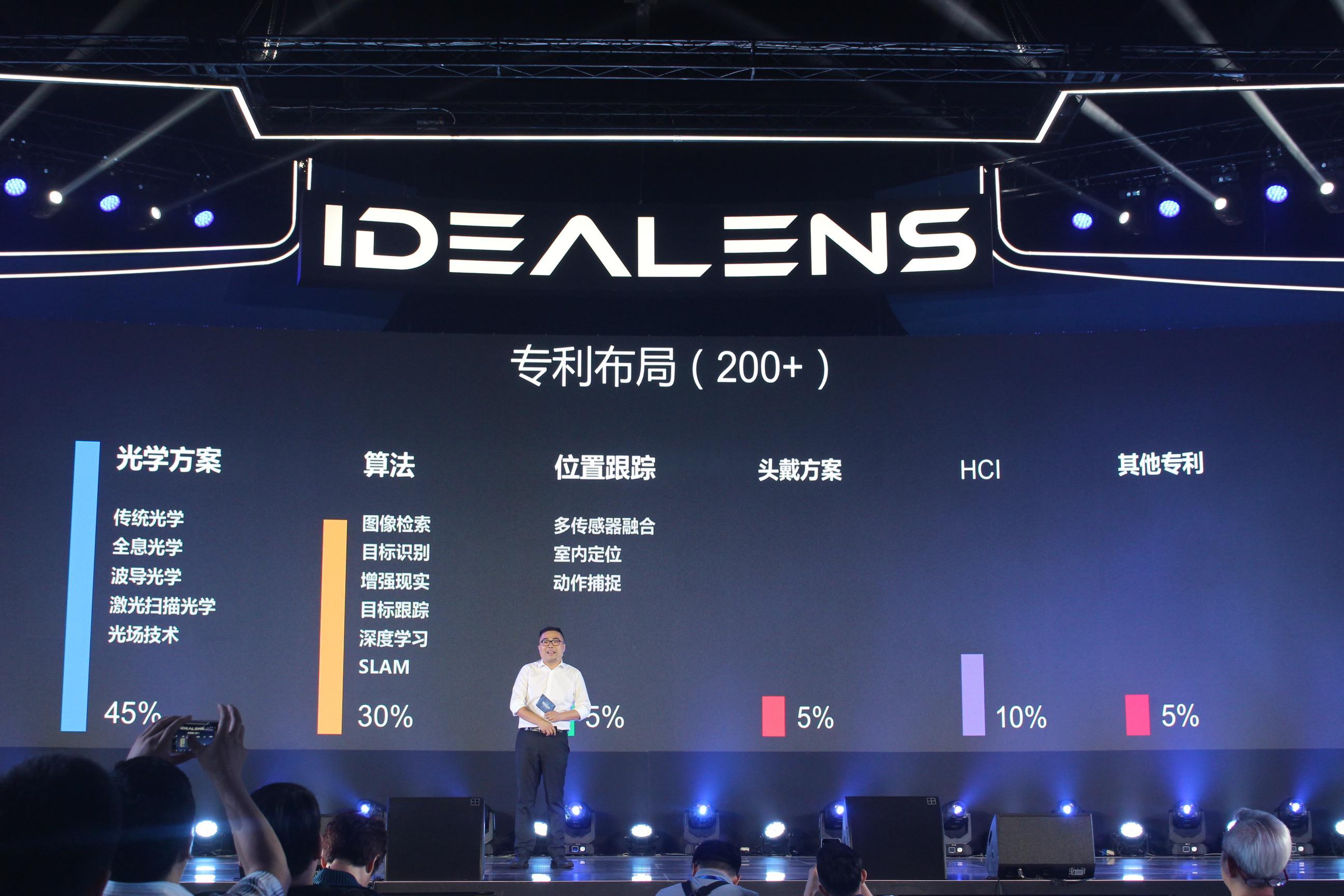 在我簡(jiǎn)單體驗(yàn)過產(chǎn)品之后,發(fā)布會(huì)正式開始。首先IDEALENS聯(lián)席CEO劉天成介紹了IDEALENS是一家什么樣的公司,作為一家技術(shù)主導(dǎo)的科技公司,IDEALENS擁有在光學(xué)方案、算法、位置跟蹤等方面的諸多專利。