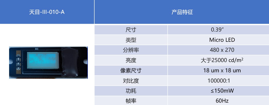 本次發(fā)布主要有兩款產(chǎn)品,一款為硅基Micro LED芯片:天目III-010-A;一款為空間光調(diào)制器:芯光II-101。
