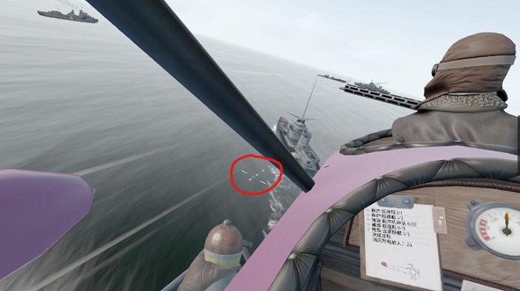 在具體的操作方式上,玩家可以選擇雙手持握操縱桿來駕駛飛機(jī),也可以通過兩個手柄上的搖桿控制飛行,前者更接近真實(shí),后者玩起來更簡單,而我個人更偏愛后者,畢竟——我是一個只貪圖爽快的休閑玩家。除了普通的機(jī)槍射擊,玩家還可以掏出裝有燃燒彈的手槍射擊飛艇和軍艦,或者拿起炸彈從空中轟炸地面目標(biāo)。這里還要注意一點(diǎn),飛機(jī)在轟炸過程中會有一個準(zhǔn)星,而不同高度炸彈落下的速度是不同的,玩家可以自己多試幾次,好好找一找“準(zhǔn)頭”。