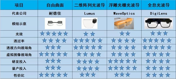 AR眼鏡光學(xué)方案性能指標(biāo)對(duì)比示意圖