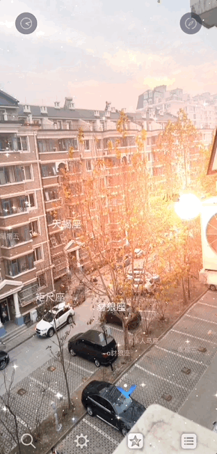 如上圖所示,《探索星空》中顯示的太陽位置與實際的位置幾乎沒有差別,這一點在手機APP和AR眼鏡中體驗是一樣的。也就是說,躺在床上戴著AR眼鏡,望向窗外就可以對浩瀚宇宙展開“探索”。如果沒有太大“追求”,看著天花板上星星點點的星空,聽著耳邊奇幻美妙的音樂也是不錯的體驗。
