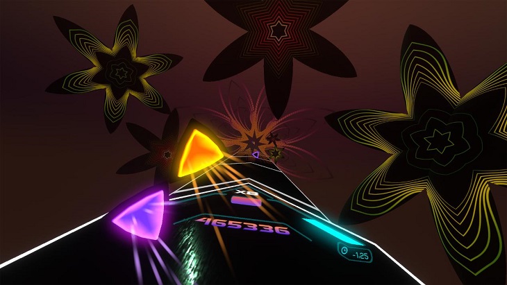 此外,作為將音樂與舞蹈動(dòng)作完美結(jié)合的VR音游,本次更新在原版基礎(chǔ)上增加了全新的舞蹈引導(dǎo)動(dòng)作,每一處舞蹈撞擊符號(hào)都是由專業(yè)舞蹈演員手工精心編排后采集而成,而不同的音樂律動(dòng)所對(duì)應(yīng)的動(dòng)作節(jié)奏也會(huì)有所差異,玩家依舊需要根據(jù)系統(tǒng)的提示來(lái)捕獲多彩寶石,駕馭音樂綢帶,打擊節(jié)奏鼓面。同時(shí),每一首音樂曲目都有其獨(dú)特的超現(xiàn)實(shí)主義氛圍,玩家不會(huì)因?yàn)橐怀刹蛔儐握{(diào)的環(huán)境而對(duì)游戲喪失熱情。不妨預(yù)想一下,鳥叔的《江南Style》究竟會(huì)演繹出什么范兒呢?