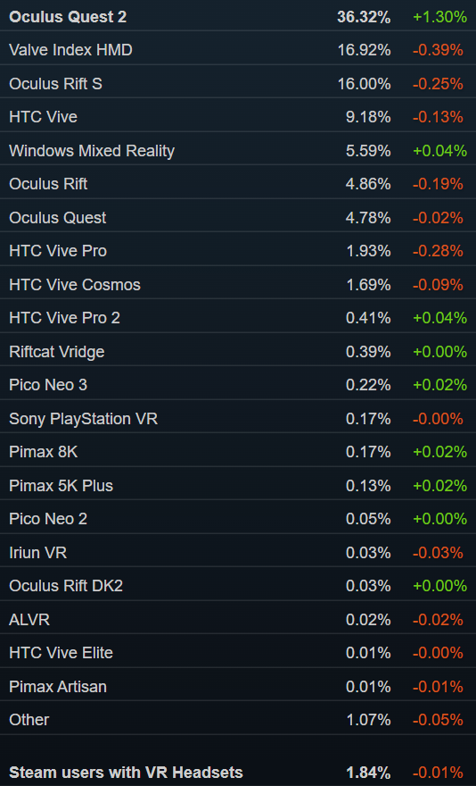 根據(jù)日前出爐的Steam 11月硬件和軟件調查報告,Valve Index的最新份額為16.92%,僅次于Oculus Quest 2(36.32%)。