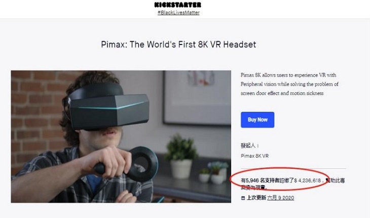2017年9月,最新版本的8K樣機(jī)正式上架眾籌網(wǎng)站Kickstarter,其眾籌額高達(dá)423萬美元,一舉超越此前Oculus保持了5年的記錄,并一直保持該項(xiàng)吉尼斯世界紀(jì)錄至今。