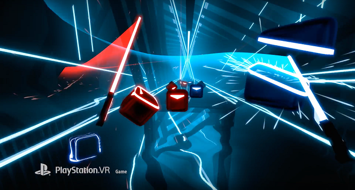除了這種讓人緊張刺激的射擊游戲,還有武器類、駕駛類、運(yùn)動類游戲,以及像是2018年現(xiàn)象級VR音游《Beat Saber》(節(jié)奏光劍),玩法不僅簡單,酷炫的光劍還能讓玩家體驗(yàn)到未來感,總的來說,VR游戲是較為直接的一種體驗(yàn)方式。