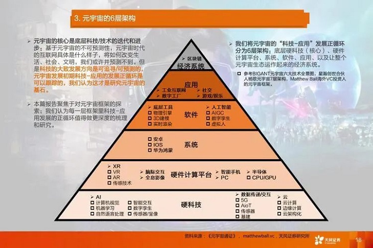 元宇宙六層架構(gòu):硬科技、硬件計(jì)算平臺、系統(tǒng)、軟件、應(yīng)用、經(jīng)濟(jì)系統(tǒng)