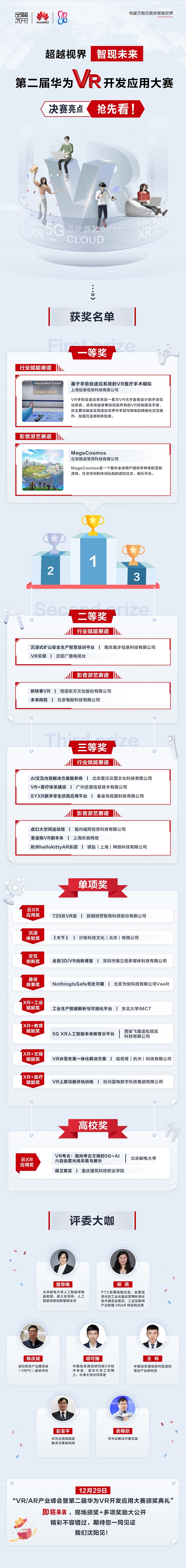 「超越視界,智現(xiàn)未來」,第二屆華為VR開發(fā)應(yīng)用大賽總決賽已經(jīng)畫上了一個(gè)圓滿的句號(hào),但更多精彩仍在延續(xù)!12月29日,VRAR產(chǎn)業(yè)峰會(huì)暨第二屆華為VR開發(fā)應(yīng)用大賽頒獎(jiǎng)禮將在沈陽君悅酒店隆重舉行。
