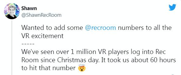 另外,VR社交應(yīng)用Rec Room也在圣誕節(jié)期間創(chuàng)下記錄,60小時內(nèi)登錄該應(yīng)用的用戶總數(shù)超過了100萬,這是一個巨大的增長,直到今年早些時候,Rec Room用了一個月的時間才達(dá)到了同樣的里程碑(100萬用戶登錄)。