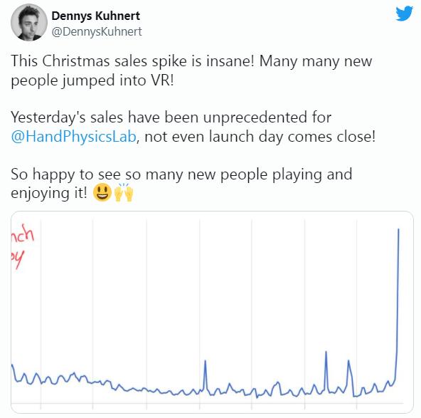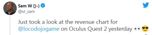 Make Real VR開發(fā)者Sam Watts表示,他對「Loco Dojo Unleashed」在圣誕節(jié)的收益圖表感到滿意,分享圖表顯示,收入指數(shù)向上飆升。