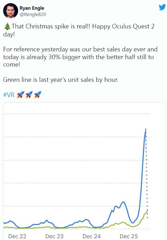 據(jù)UploadVR報(bào)道,過去幾年,圣誕假日已成為促進(jìn)VR行業(yè)增長的一個日益重要的節(jié)日,尤其是2019年后的Quest時代,隨著元宇宙概念的火熱,VR行業(yè)明顯受益,根據(jù)各項(xiàng)統(tǒng)計(jì)數(shù)據(jù)表明,2021年圣誕是迄今為止最大的“VR圣誕節(jié)”。