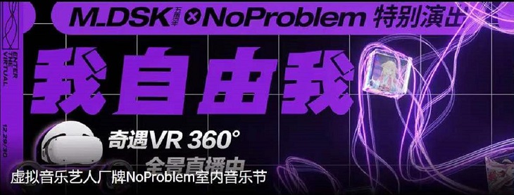近日,由國內虛擬偶像平臺型服務商萬像文化聯(lián)合摩登天空共同打造的虛擬音樂藝人廠牌NoProblem在2021年歲末推出了“M_DSK五周年× NoProblem特別演出”。此次演出由NoProblem聯(lián)合國內知名Hip-Hop廠牌M_DSK傾情打造,送給粉絲們的一場年末回饋。并授權國內知名VR品牌——愛奇藝奇遇,以及愛奇藝直播特殊呈現(xiàn),共同探索虛擬偶像音樂娛樂互動新場景。