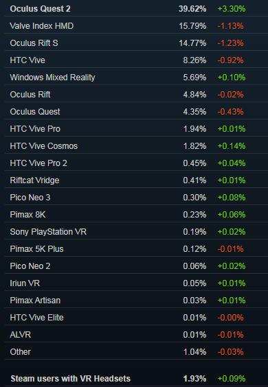 根據調查, Steam VR用戶占比達到1.93%,這一比例比過去幾月略有增長,盡管Meta、Valve、HTC等公司沒有透露銷售數據,但Steam硬件和軟件調查依然是目前PC VR最可靠的參考指標。