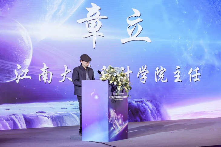 江南大學設計學院主任章立代表高校教師進行了發(fā)言,介紹了元宇宙時代下信息形態(tài)的特征。元宇宙影響了數(shù)字藝術,改變了傳統(tǒng)審美的標準,如何把握受眾和審美趣味的變化,成為了當今設計師面臨的問題。因此,高校需要培養(yǎng)具有良好的人文素質、藝術修養(yǎng)和敏銳洞察力的學生。而作為高校老師,不僅應該讓學生掌握專業(yè)知識,還需要教給學生思考問題和解決問題的能力。