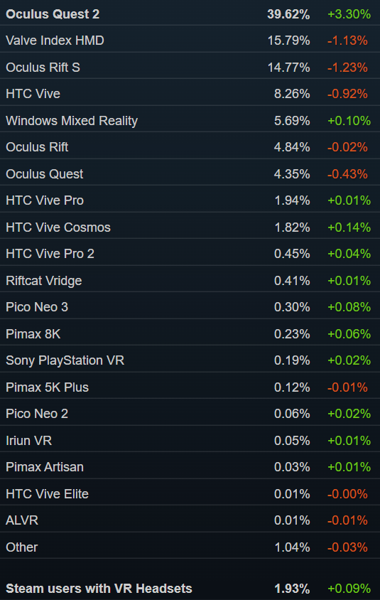 「V社VR套件(Valve Index)」繼續(xù)穩(wěn)定入圍TOP10,拿下第八名。Steam 12月硬件和軟件調(diào)查報告顯示,Valve Index的最新份額為15.79%,依然是該平臺活躍度最高的PC VR頭顯。