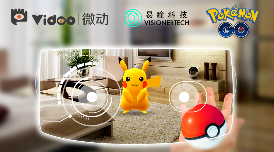接下來,我們要做的就是在空間當(dāng)中顯示Pokémon GO中的游戲元素,并且讓皮卡丘和精靈球顯示在合理的空間范圍之內(nèi)。我們采用視頻透視技術(shù),通過雙目攝像頭實(shí)時(shí)采集你看到的“現(xiàn)實(shí)”世界并將之?dāng)?shù)字化,然后通過計(jì)算機(jī)算法實(shí)時(shí)渲染畫面。這樣做完既可以完全疊加虛擬圖像,也可以看到的經(jīng)過計(jì)算機(jī)渲染后新的“現(xiàn)實(shí)畫面”。滿足了我們對于虛擬物體和現(xiàn)實(shí)環(huán)境同時(shí)存在的需求。