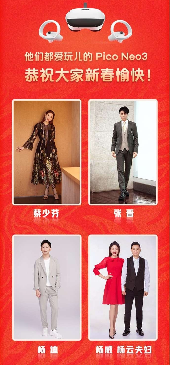 演員張晉在發(fā)布一家五口合體慶新年Vlog時,就為“娘娘”蔡少芬準(zhǔn)備甜蜜驚喜禮物Pico Neo3;另外優(yōu)秀喜劇大咖楊迪以及楊迪媽媽、奧運冠軍楊威家庭都紛紛選擇了Pico Neo3,作為送給家人新年的禮物,由此可見明星家庭對于這款VR產(chǎn)品的喜愛。