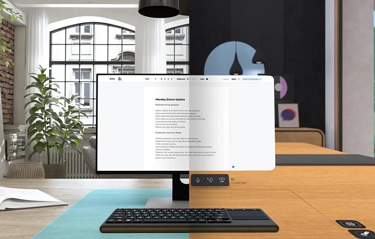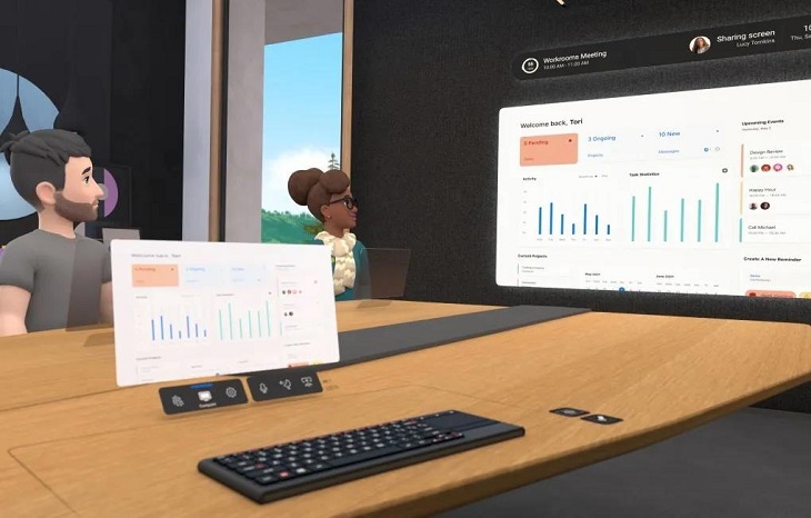 除此之外「Horizon Workrooms」還能追蹤羅技K830藍牙鍵盤和特定Mac鍵盤,并在VR中顯示正確位置,該應(yīng)用還支持在PC或Mac上運行,假設(shè)用戶鍵盤可以被跟蹤(Meta表示正在努力添加更多兼容鍵盤),虛擬房間中的其他人可以看到鍵盤所處位置,但他們看不到用戶屏幕,除非用戶將其投影。