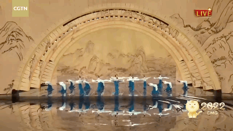 當(dāng)然,《金面》不是春晚唯一一個借助沉浸式舞臺的節(jié)目,被推上熱搜「青綠腰」的出處《只此青綠》、創(chuàng)意音舞詩畫《憶江南》背景中《千里江山圖》、《富春山居圖》的恢弘、詩意的山水場景,也是通過XR、全息掃描等技術(shù)呈現(xiàn)。特別是《只此青綠》,正是利用XR技術(shù)在地板上做出鏡面效果,呈現(xiàn)出「人從畫中來、到畫中去」的中國山水畫、特別是色彩中的朦朧意向美。