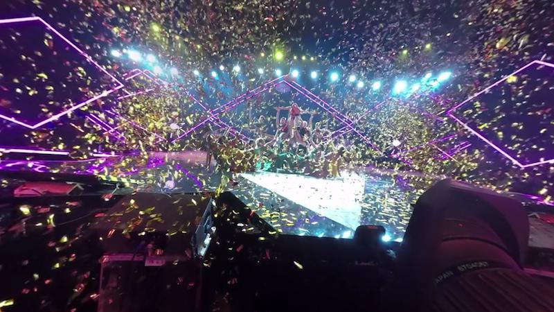 而一個(gè)放置在那英和汪峰中間的機(jī)位,我看到了一些有意思的細(xì)節(jié)。在一首歌曲的高潮部分,我看到汪峰的腳一點(diǎn)一點(diǎn)剁著地面,身體也隨著節(jié)奏進(jìn)行搖擺,這些細(xì)節(jié)可能就是VR視頻帶給我們的不同體驗(yàn)。