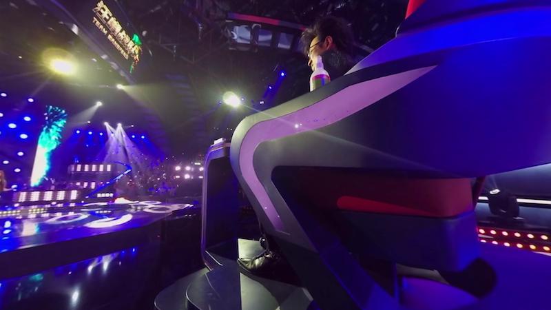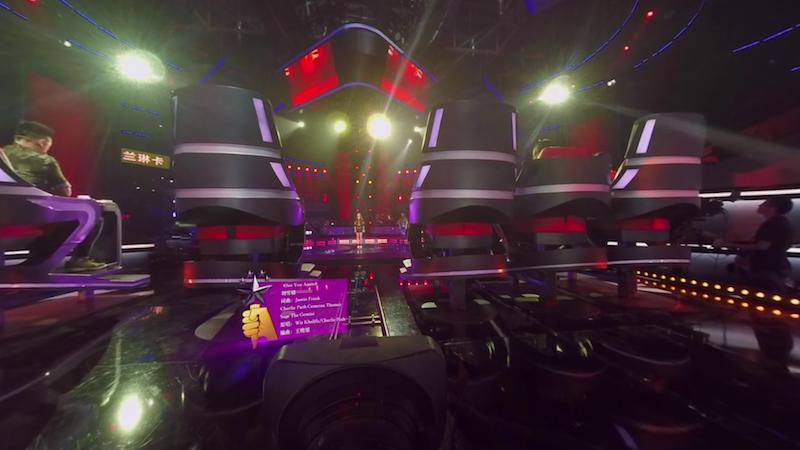 而在《中國(guó)新歌聲》里面,我也看到了一些特色,比如說歌曲開始的時(shí)候畫面出現(xiàn)了提示畫面,顯示歌曲的一些信息。上回我說過,對(duì)于一些字幕、提示畫面和特效的添加,在技術(shù)上對(duì)于VR版本來說都是沒問題的。