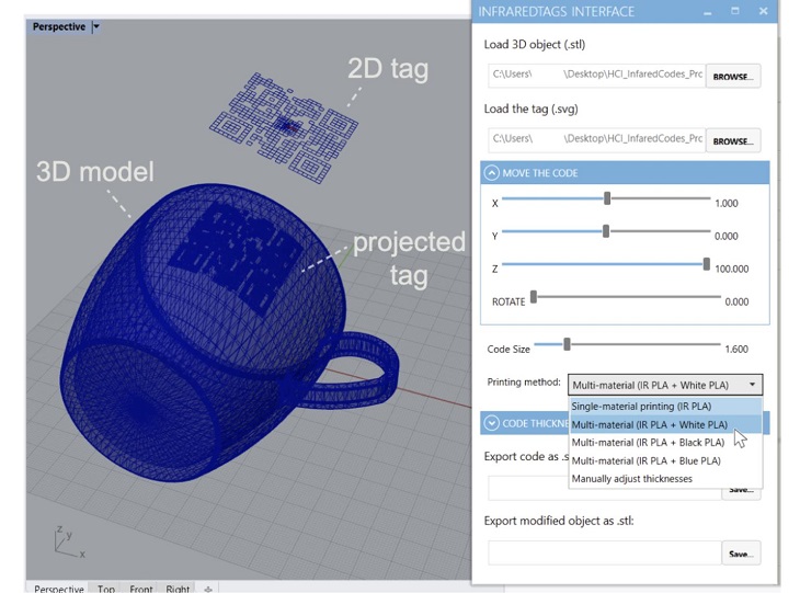 團(tuán)隊表示:“我們基于IR模塊3D打印幾何物體,并創(chuàng)建AR標(biāo)簽,由于主要幾何結(jié)構(gòu)在紅外區(qū)域是半透明的,近紅外攝像機(jī)可以通過它看到并捕捉不同強(qiáng)度的AR標(biāo)記?!?/p>