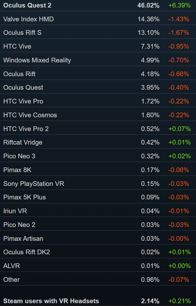 備受我們關(guān)注的「V社VR套件(Valve Index)」回歸TOP10,拿下第六名。Steam 1月硬件和軟件調(diào)查報(bào)告顯示,Valve Index的最新份額為14.36%(-1.43%),但依然是該平臺(tái)活躍度最高的PC VR頭顯。