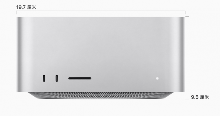 Mac Studio是蘋果新開辟的一條產(chǎn)品線,主要面向?qū)I(yè)用戶,產(chǎn)品定位與Mac Pro較為接近。在設(shè)計方面,Mac Studio機身采用鋁金屬壓制一體成型工藝,底邊長僅7.7英寸(約 19.7厘米),高僅為3.7英寸(約9.5厘米),整體外觀小巧玲瓏,可以輕松置于多數(shù)顯示器下方。