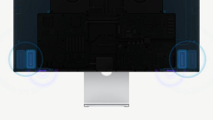 Studio Display前置了1200像素超廣角攝像頭,配有六個揚聲器以及錄音棚級的三麥克風陣列。作為 Mac 上迄今最高配置的高保真六揚聲器系統(tǒng),Studio Display的四個振動抵消低音單元可以最大限度地減少失真,生成渾厚有力的低音;而兩個高性能高音單元則能生成精準飽滿的中音和清澈透亮的高音。