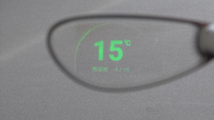 具體而言,OPPO Air Glass的眼鏡主體采用了流線型設(shè)計。機身重量約為30克,在佩戴時我沒有產(chǎn)生明顯的壓迫感。機身前方是一塊1.3毫米厚度的鏡片,鏡片內(nèi)集成了640 * 480的Micro LED顯示屏。除了鏡片,機身還內(nèi)置了藍牙模塊、麥克風(fēng)和揚聲器,可謂麻雀雖小五臟俱全。當(dāng)然,在高顏值的背后,我們更關(guān)心的則是這款產(chǎn)品的功能究竟如何。