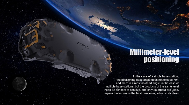 arpara Tracker是專門為arpara 5K VR 頭顯設(shè)計(jì)的6DoF定位配件,讓本身自帶3DoF定位的頭顯馬上具備6DoF定位功能。值得一提的是,其小巧的外觀設(shè)計(jì)和超輕的黑色塑料材質(zhì),與arpara頭顯組合后總重量仍低于市面同類型產(chǎn)品。另外,arpara Tracker表面擁有28個(gè)Triad光學(xué)傳感器,確保全方位穩(wěn)定的接收SteamVR基站的定位信息。