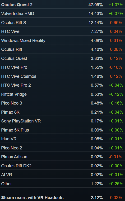 在被字節(jié)跳動收購并大手筆進行營銷投入之后,Pico的份額已攀升至0.52%(其中主打產(chǎn)品Pico Neo 3占比0.48%),在單品漲幅方面僅落后于Quset 2。結(jié)合最近有消息稱字節(jié)跳動大幅度上調(diào)了Pico Neo 3在2022年的銷量預期,預計在Steam 3月硬件和軟件調(diào)查報告中,Pico Neo 3的份額將會繼續(xù)快速增長。