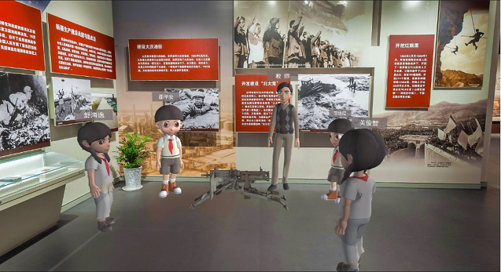 3)最后,根據(jù)需求,參與者進(jìn)入虛擬場景后可以自己定制場景和互動,比如使用成體系的720°革命展廳、互動組件、黨史和長征中經(jīng)典場景和視頻講解,各種三維的革命文物,AI模塊、互動程序或互動模型等,參與者也可以使用和定制 語音識別模塊,調(diào)用習(xí)題和問答等。