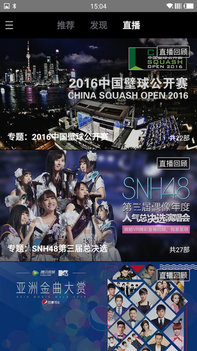 小編隨便觀看了幾個(gè)節(jié)目,無(wú)論是優(yōu)雅的冰上盛典,還是華麗的SNH48總決選,或者是緊張的中國(guó)壁球公開賽,共同的感覺都是如臨現(xiàn)場(chǎng)。在選手和明星的身邊觀看現(xiàn)場(chǎng)表演,這應(yīng)該算是一種VVIP的待遇了吧,打開手機(jī),微鯨VR就能帶給你這種尊貴享受。