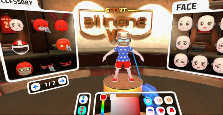 正所謂兵馬未動(dòng)而糧草先行,有過健身運(yùn)動(dòng)經(jīng)歷的同學(xué)一定知道,不管成績(jī)練得如何,上陣之前的裝備都必不可缺。《多合一運(yùn)動(dòng)VR(All-In-One Sports VR)》也考慮到了這一點(diǎn),因此從運(yùn)動(dòng)服,頭盔,再到面具,都給出了多個(gè)不同選擇。只要你喜歡,那戴著小熊頭套或者玻璃眼鏡去打拳擊也完全沒問題。此外,游戲內(nèi)的角色性別和形象也是可以自由選擇的,發(fā)型+服裝+不同臉型,配合調(diào)色系統(tǒng),輕松就能搭配獨(dú)屬于你的可愛形象。