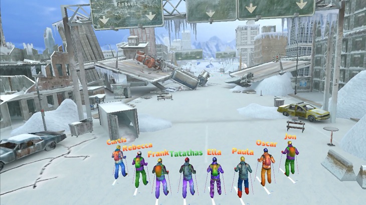 游戲中,玩家需要緊握滑雪桿,通過擺動手臂和全身動作配合,在宏偉的雪山上速降,每一個動作細(xì)節(jié)都將影響你的滑行方向和滑行效果,不僅如此,玩家甚至可能與一些小狗、麋鹿或是不具名的小鳥來個美麗邂逅,面對突然襲來的干擾,玩家必須靈活躲避來保持高速滑行。