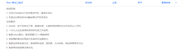 另外,大朋VR近期正在招聘的核心崗位就有SLAM 算法工程師,其主要工作職責(zé)為: