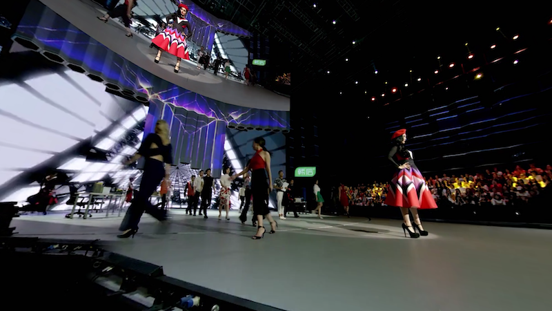 下面說一下我的觀看體驗。本季《我的新衣》VR版的機位正好能夠覆蓋到從舞臺到后方的評委席(買手席)的全部視野,也就是說,在觀看時裝秀的同時,我也可以回頭去看各位買手的反應(yīng),包括在后面的議價環(huán)節(jié),也可以全方位的看到女神、設(shè)計師與買手的互動,這種體驗是非常不錯的。之前我也說過,VR節(jié)目的競爭者并不是傳統(tǒng)直播或錄播,而是現(xiàn)場觀看的方式。通過觀看VR節(jié)目,我們可以用一種VIP的位置和角度去欣賞整場節(jié)目,而這點對于時尚秀更加的適用。