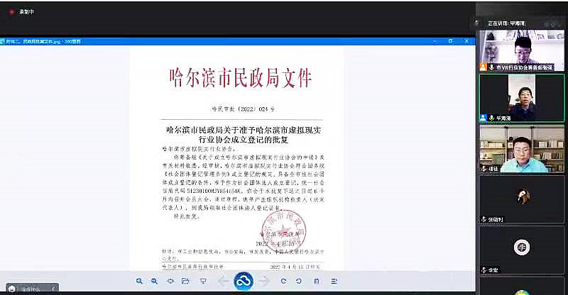 為緊抓數(shù)字經(jīng)濟(jì)發(fā)展機(jī)遇,促進(jìn)哈爾濱市虛擬現(xiàn)實(shí)(VR)產(chǎn)業(yè)健康與持續(xù)發(fā)展,哈爾濱市虛擬現(xiàn)實(shí)行業(yè)協(xié)會(huì)于4月24日正式宣告成立,由于疫情影響,協(xié)會(huì)成立大會(huì)以線上視頻會(huì)議的形式召開,哈爾濱市民政局社會(huì)組織管理局局長(zhǎng)畢海清通過視頻會(huì)議平臺(tái)出席并宣讀了準(zhǔn)予協(xié)會(huì)成立登記的批復(fù)文件。同時(shí)所有協(xié)會(huì)成員共同審議了協(xié)會(huì)的章程草案、擬任理事會(huì)名單等,均通過表決順利通過。由哈爾濱愛威爾科技有限公司的創(chuàng)始人兼總經(jīng)理項(xiàng)征擔(dān)任協(xié)會(huì)首任會(huì)長(zhǎng)。