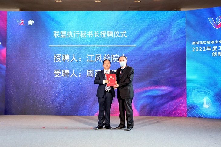 2022年4月29日,由虛擬現(xiàn)實(shí)制造業(yè)技術(shù)創(chuàng)新戰(zhàn)略聯(lián)盟主辦、南昌虛擬現(xiàn)實(shí)研究院股份有限公司承辦、江西省工業(yè)和信息化廳與南昌市人民政府擔(dān)任指導(dǎo)單位的“虛擬現(xiàn)實(shí)制造業(yè)技術(shù)創(chuàng)新戰(zhàn)略聯(lián)盟(VRMTA)2022年度工作會(huì)議暨VR產(chǎn)業(yè)創(chuàng)新高峰論壇”在江西南昌圓滿落幕。