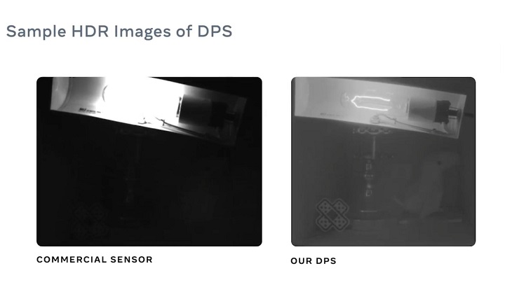 Abrash說,這不僅降低了功耗,而且還大大增加了傳感器的動態(tài)范圍(它能在同一圖像中捕獲昏暗和明亮的光線水平),同時Abrash分享了用Meta原型傳感器拍攝的樣本圖像,與典型傳感器進行了比較,以演示寬動態(tài)范圍。