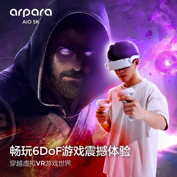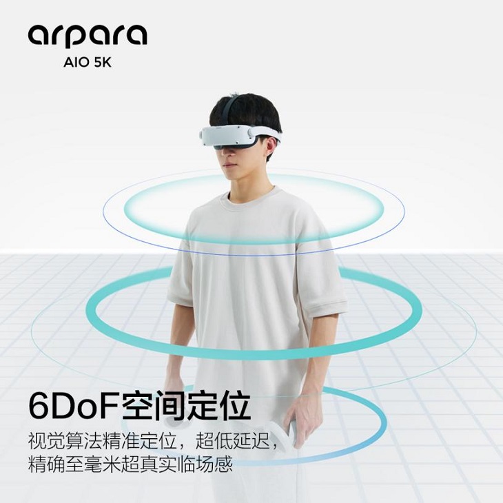 定位方面,arpara AIO 5K VR一體機(jī)采用視覺算法配合6DoF光學(xué)追蹤手柄,超低延遲,實(shí)現(xiàn)毫米級(jí)精準(zhǔn)定位。同時(shí)搭載了主流的高通驍龍XR2處理器,可輕松解碼90幀8K分辨率規(guī)格的360°VR視頻畫面,流暢運(yùn)行各類大型VR游戲。