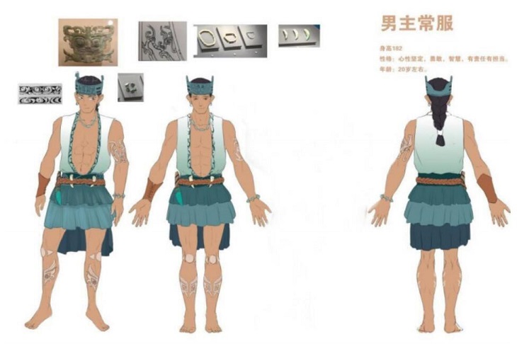 男主魚鳧的細(xì)節(jié)設(shè)定,比如身高180厘米,這并不是憑空想象,而是參照了三星堆出土的國(guó)寶級(jí)文物青銅大立人像的高度。并且,魚鳧的形象裝扮也保留了青銅大立人像的特點(diǎn),“這也是對(duì)文物的一種致敬?!薄?/p>