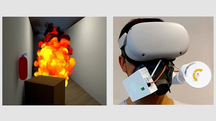 當(dāng)煙霧彌漫房間時(shí),阻力盤就會限制通過面罩的氣流,以模擬煙霧吸入和體力下降,研究團(tuán)隊(duì)稱,阻礙用戶呼吸則會增加壓力水平,以使用戶進(jìn)一步沉浸在各種高風(fēng)險(xiǎn)場景中。